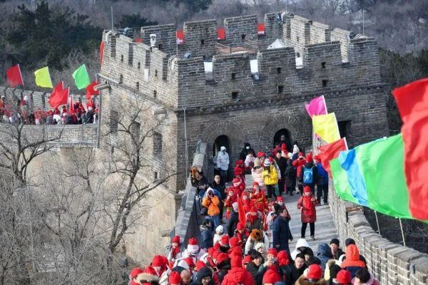 1月1日,2024年全国新年登高健身大会北京会场活动在北京八达岭长城举行。新华社记者 鞠焕宗 摄