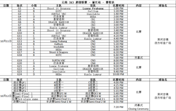 2025云南3X3超级篮球联赛丽江站赛程表